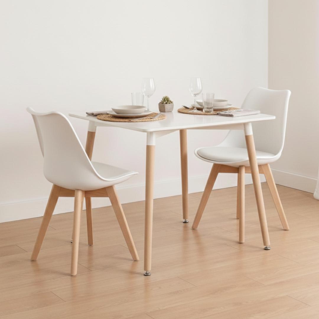 Comedor Mesa Aroa Blanca 80x80 cm + 2 Sillas Tulip Blanca