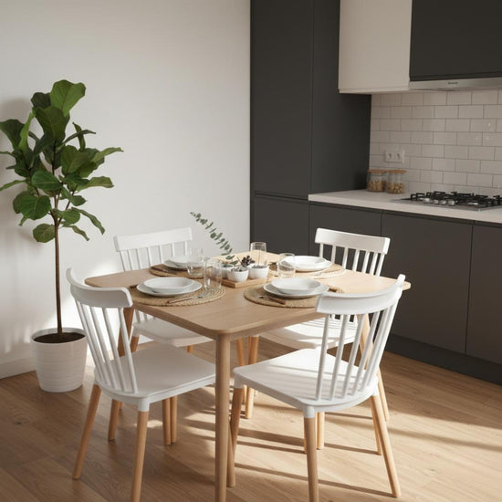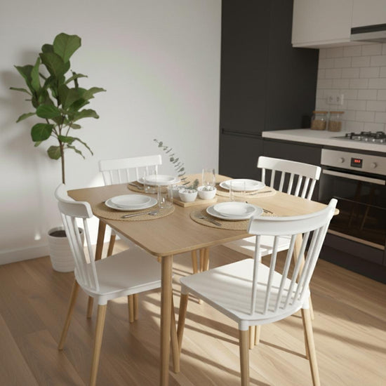Comedor Mesa Cosmo Natural 60x60 cm + 4 Sillas Windsor Blanca