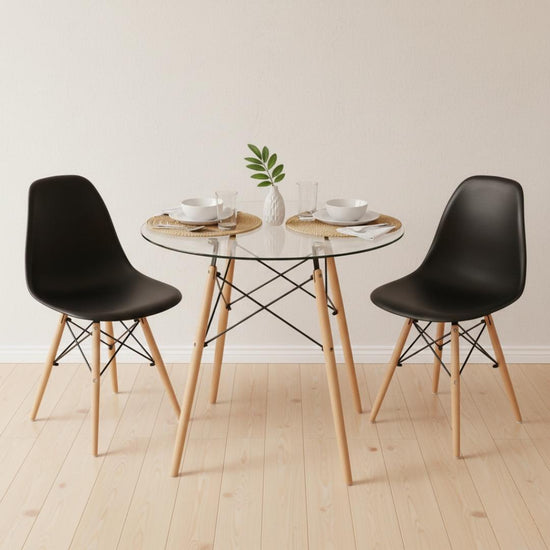 Comedor Mesa Elida 80 cm + 2 Sillas Eames Negro