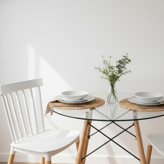 ¡Renueva tu espacio con el elegante y funcional Pack Comedor Elida de 80 cm y dos Sillas Windsor! Este conjunto compacto es ideal para departamentos, cocinas o áreas de desayuno que buscan optimizar el espacio sin sacrificar el estilo. La Mesa Elida destaca por su moderna cubierta de vidrio templado, fácil de limpiar y resistente, que se apoya en un robusto soporte de acero y patas de madera. Las Sillas Windsor complementan el diseño con su icónico estilo, ofreciendo un asiento confortable de polipropileno en color blanco y patas de madera.