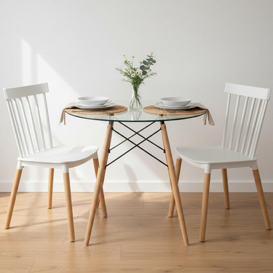 Comedor Mesa Elida 80 cm + 2 Sillas Windsor Blanco