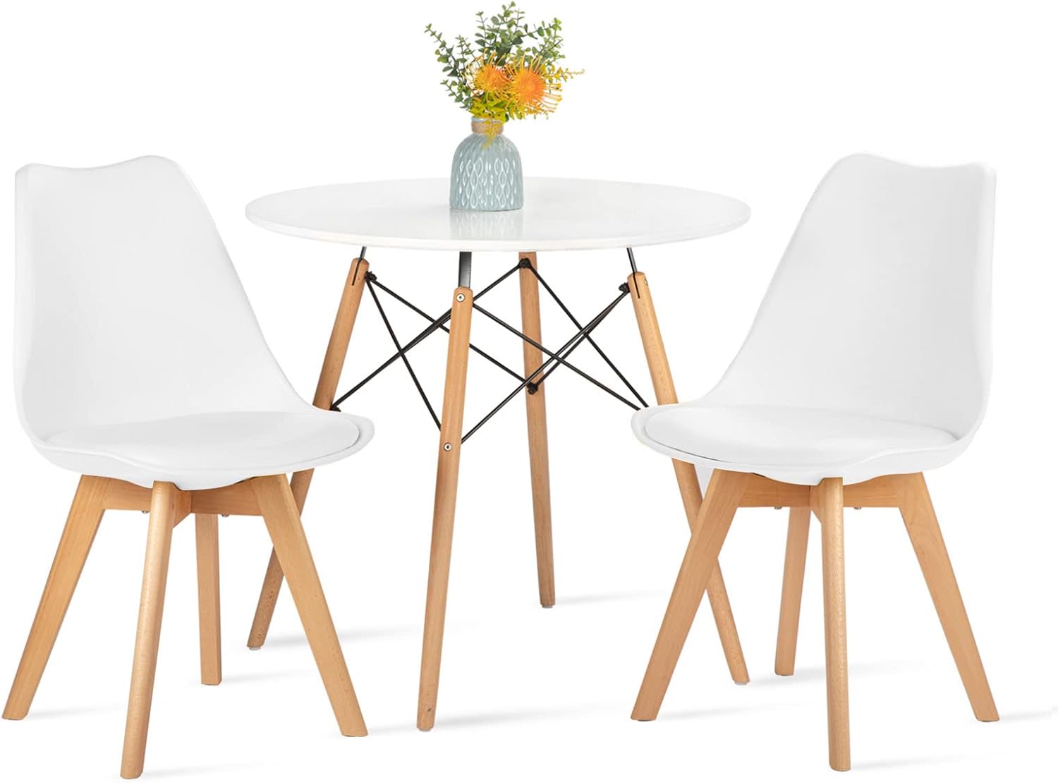 Comedor Moderno Mesa Estela 80cm + 2 Sillas Tulip | Diseño Nórdico