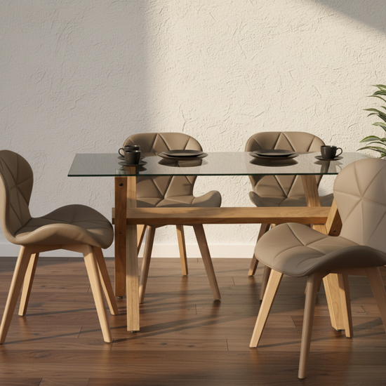 Comedor Moderno Mesa Xinia 130x80 + 4 Sillones Rubik Latte