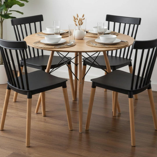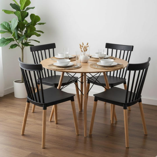 Comedor Redondo Shanna 80 cm + 4 Sillas Windsor Negro