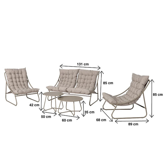 Transforma tu espacio exterior en un oasis de relajación con el Juego de Terraza "Arena" de 5 Piezas. Este elegante y funcional conjunto de living es la solución perfecta para disfrutar al máximo de tu balcón, patio o jardín, ya sea para un café tranquilo o para recibir a tus invitados.