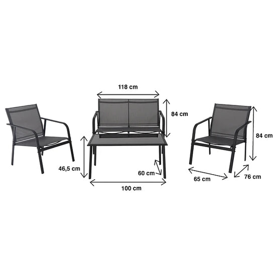 Diseñado para la vida al aire libre, este conjunto combina la solidez del acero en su estructura con la innovadora tela Textilene en los asientos, creando un equilibrio perfecto entre durabilidad y diseño contemporáneo. Es la solución ideal para crear un acogedor rincón en tu terraza, jardín o balcón.