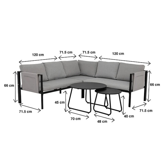 Juego de Terraza Grey | Sofá Esquinero + 2 Mesas de Centro