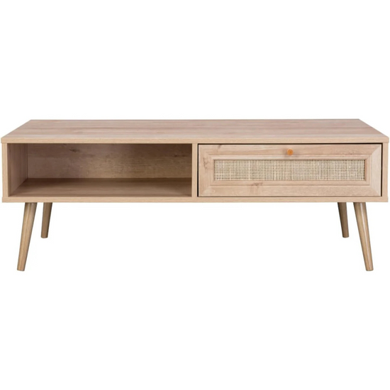 Transforma tu sala de estar con la Mesa de Centro Marshall, una pieza que combina la calidez natural de la madera con el encanto artesanal del rattan. Con un diseño limpio y moderno, esta mesa es la adición perfecta para quienes buscan un estilo natural, bohemio o nórdico.