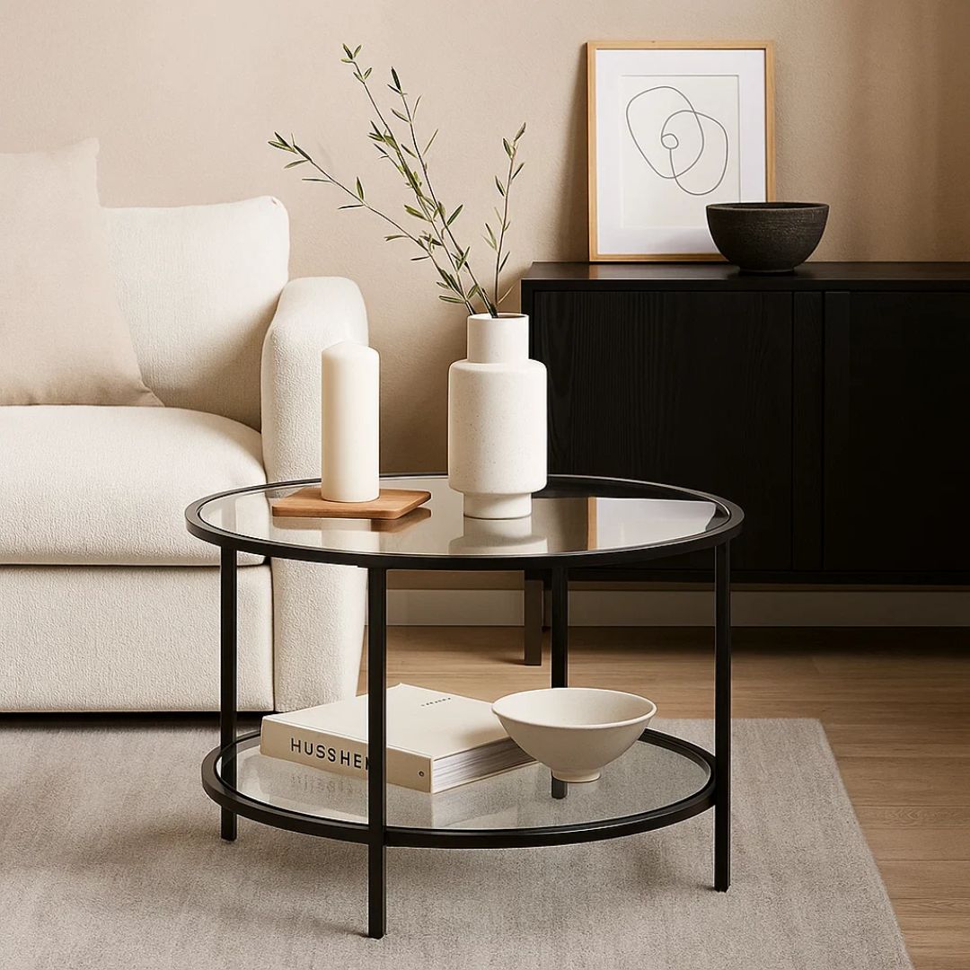 La Mesa de Centro Redonda Foster combina elegancia y modernidad en un diseño versátil, ideal para realzar tu living o sala de estar. Su cubierta principal de vidrio templado de alta resistencia no solo aporta una sensación de amplitud y luminosidad al espacio, sino que también es fácil de limpiar.