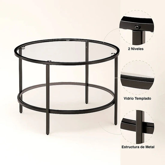 Mesa de Centro Foster | Vidrio y Metal Negro