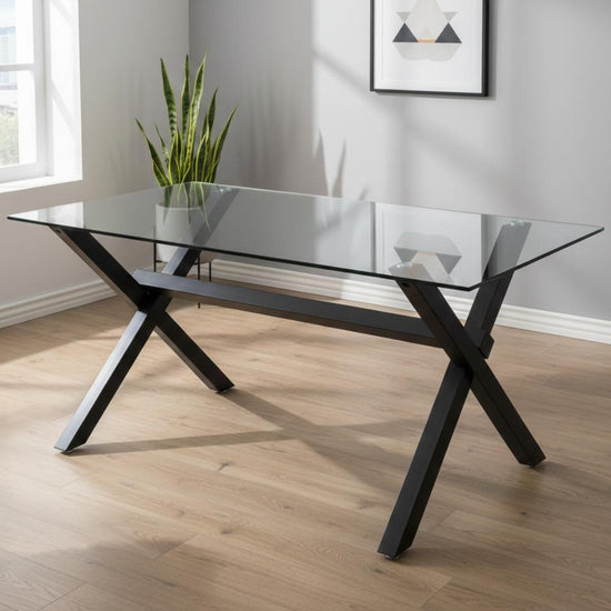 Su robusta estructura de metal con acabado en negro mate no solo garantiza una estabilidad excepcional, sino que crea un contraste audaz y elegante con la transparencia del cristal. La Mesa Xinia no es solo un mueble; es una declaración de estilo que equilibra la resistencia de los materiales industriales con la delicadeza del diseño minimalista. Ideal para quienes buscan un ambiente contemporáneo, limpio y funcional.