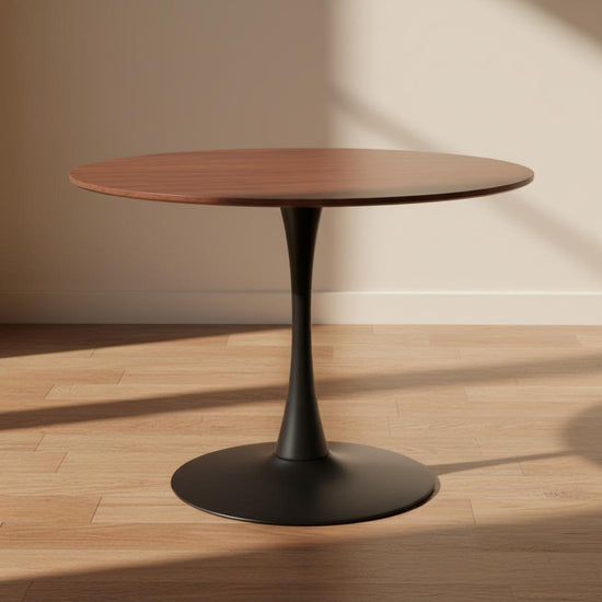 Mesa Redonda Tulip 120cm | Cubierta Efecto Madera Oscura