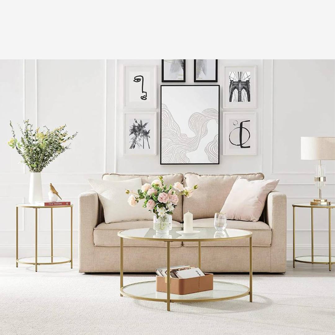 Mesa de centro Regina: Elegante y funcional, dorada y de vidrio templado.