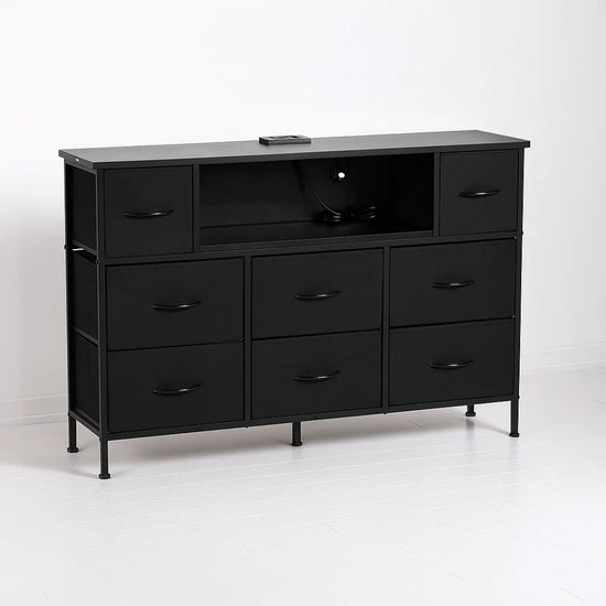 Incorpora ocho amplios cajones extraíbles de tela, ideales para almacenar ropa, juguetes, accesorios u otros objetos, manteniendo el orden y la limpieza de manera sencilla y accesible. Su diseño moderno y minimalista se adapta fácilmente a diferentes estilos de decoración, convirtiéndolo en una pieza esencial para el almacenamiento inteligente.