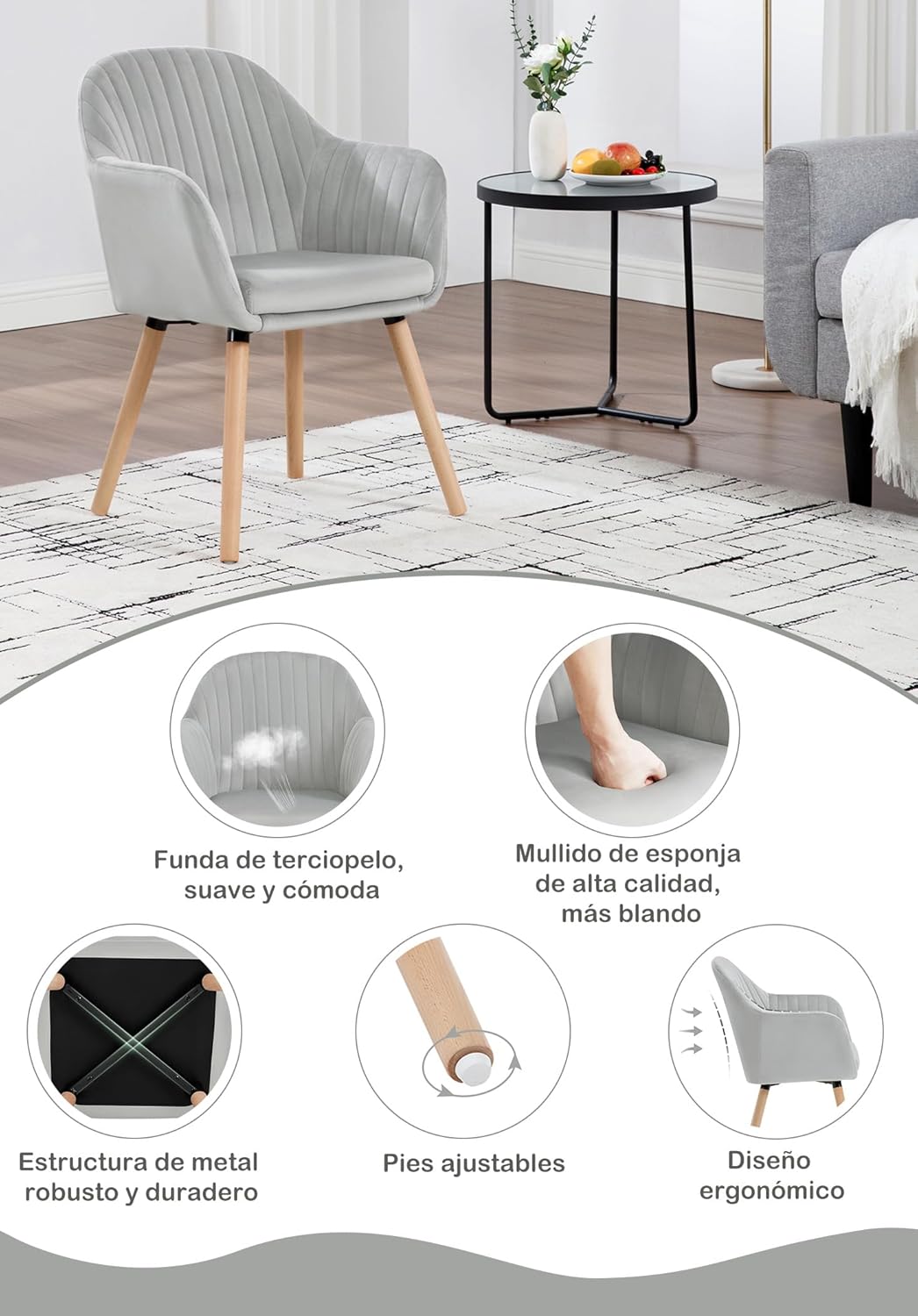 Pack 2 Butacas Sitiales Almer Velvet Gris | Sala, Dormitorio u Oficina