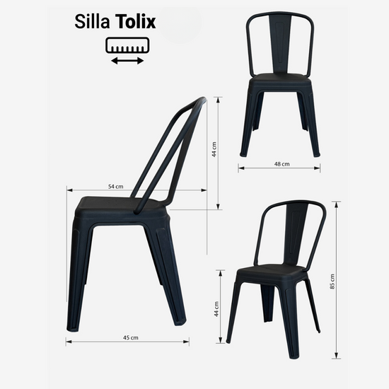 Pack 4 Silla Tolix Negro | Plástico Reforzado para Exterior e Interior