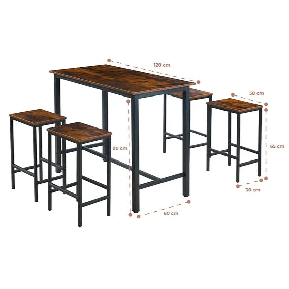 Pack Mesa Alta + 4 Taburetes Bar | Estilo Industrial