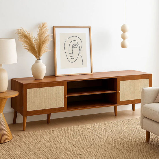 Su estructura de líneas limpias y perfil bajo está diseñada específicamente para optimizar el campo visual de tus pantallas, mientras que su amplia superficie permite albergar televisores de gran formato sin sacrificar la estabilidad. No es solo un soporte; es una declaración de estilo que organiza tus dispositivos electrónicos, consolas y objetos decorativos con una elegancia impecable.