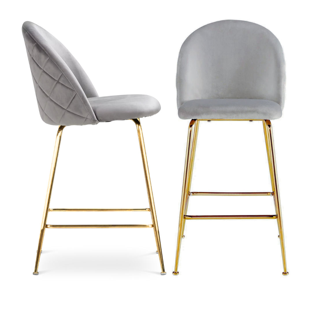 Sumérgete en la suavidad del terciopelo y déjate envolver por el diseño elegante del taburete Maya Grey de altura 66cm. Su respaldo curvo y su asiento acolchado ofrecen un confort incomparable, convirtiéndolo en el aliado perfecto para relajarte después de un largo día. Las patas doradas, con un acabado brillante, aportan un toque de lujo y sofisticación que elevará cualquier espacio. El taburete Maya Grey se adapta a cualquier ambiente, añadiendo un toque de distinción y calidez. Su diseño versátil combina a la perfección con estilos decorativos modernos y clásicos, convirtiéndolo en una pieza atemporal que perdurará en el tiempo.